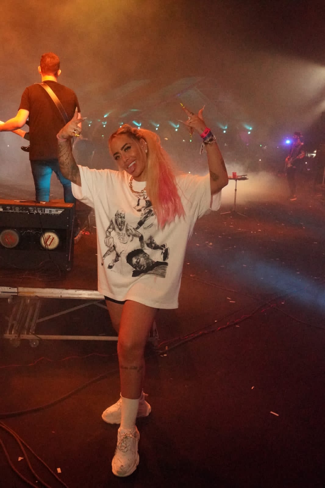 A nova namorada de Luan Santana o acompanhou no show e rendeu carinhos no camarim e assistiu o show de cima do palco.