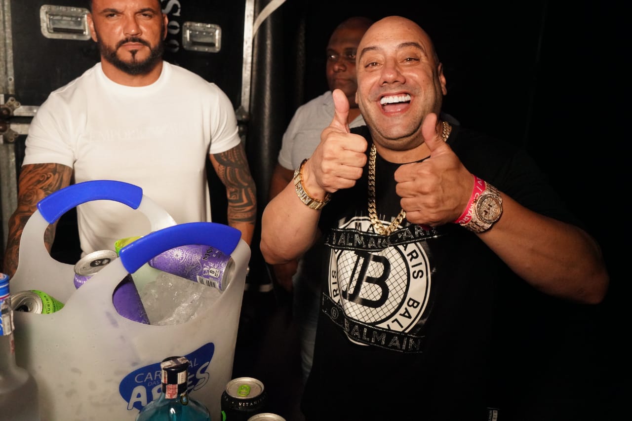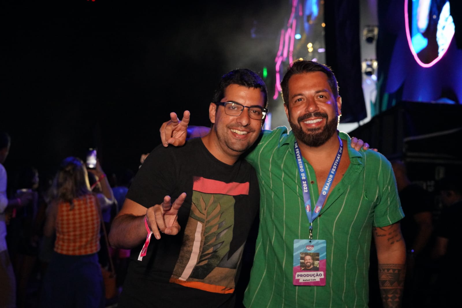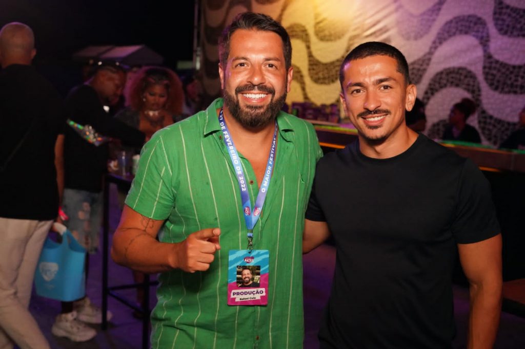 Os sócios do evento Rafael Cuia e Ronald Benevides comemoram o sucesso do evento neste primeiro dia que terminou as 7 da manhã.