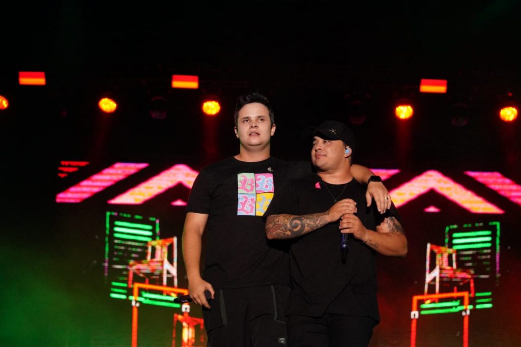 A dupla Mateus & Kauan fizeram homenagem a Marília Mendonça e receberam no camarim a irmã do Neymar.