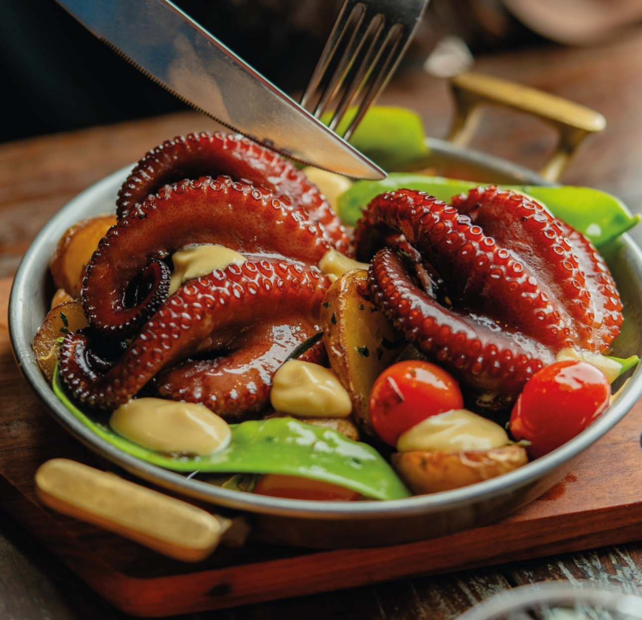 No menu, os sabores são marcados pela qualidade extrema da matéria-prima. Além dos cortes bovinos premium, como o icônico Prime Rib e o Chorizo, o restaurante se destaca por acompanhamentos clássicos que ganham toques de refinamento, como o famoso arroz de biro-biro e o irresistível pudim com praliné de leite condensado. Para os amantes de vinho, a adega da casa oferece rótulos selecionados que harmonizam perfeitamente com a intensidade das carnes.