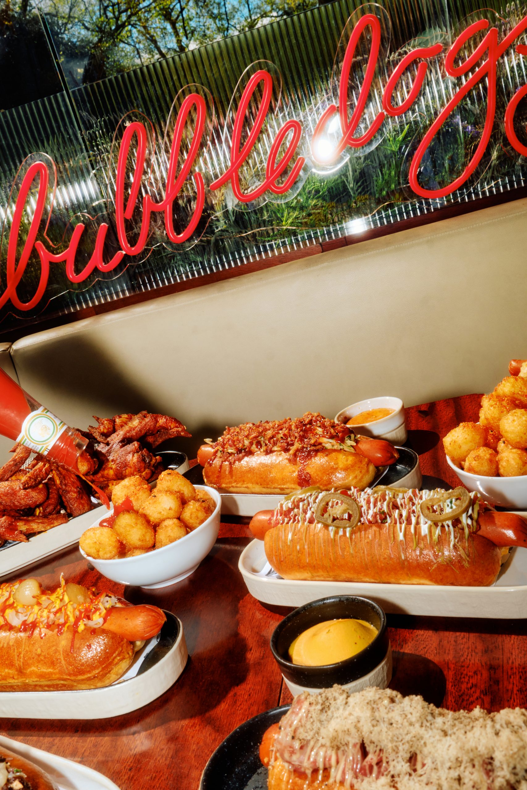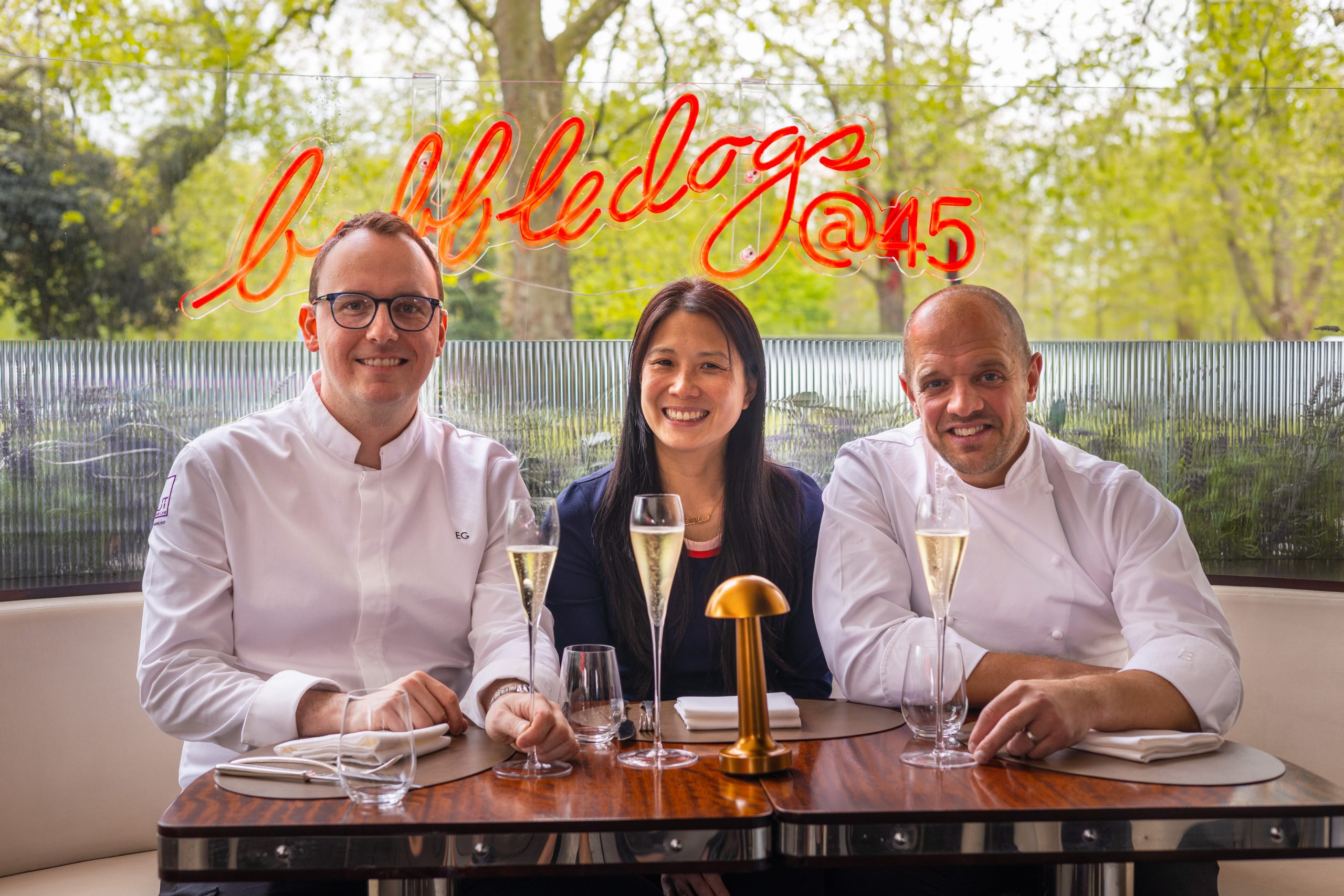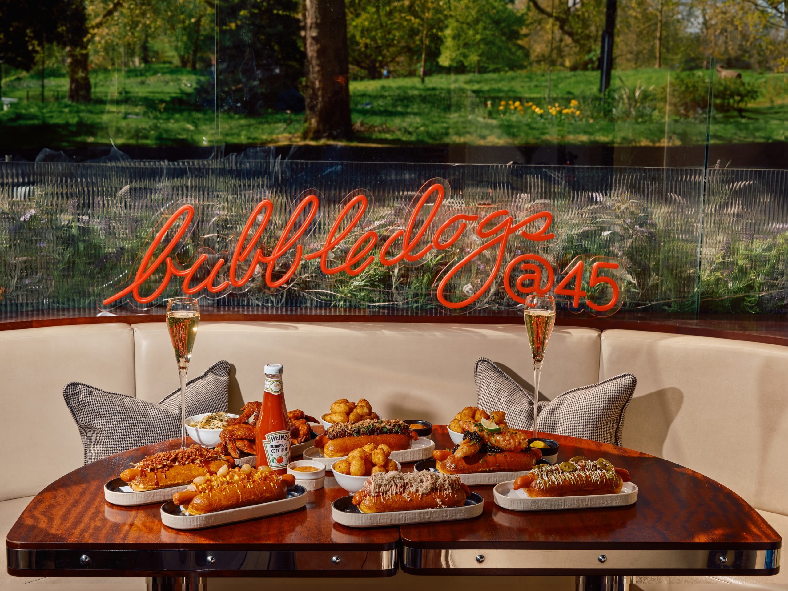 Em colaboração com o chef executivo do 45 Park Lane, Elliott Grover, e os fundadores do Bubbledogs e Kitchen Table com duas estrelas Michelin, Sandia Chang e James Knappett, o menu personalizado de cachorros-quentes gourmet e combinações de champanhe de produtor estará disponível exclusivamente no ‘Bubbledogs at 45’.