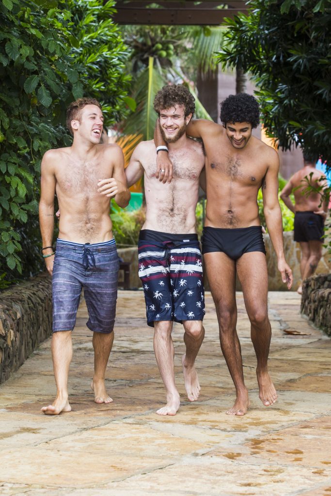 Atores João Côrtes, Bruno Suzano e Vitor Thiré descansam no Beach Park