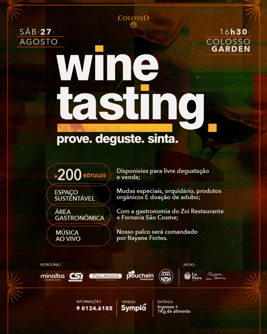 A 3ª edição do Wine Tasting conta também com a presença de rótulos como Garzón, eleita a melhor vinícola do mundo, Carm, Rosé D’Anjou, além de quase 200 outros rótulos que também estarão disponíveis.