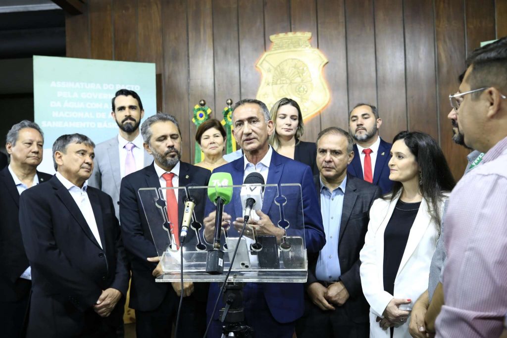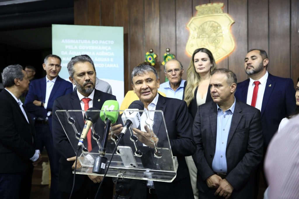 O governador Elmano de Freitas assinou, nesta segunda-feira (10), o Pacto pela Governança da Água. Elaborado para estimular a articulação federal, estadual e distrital no sentido do fortalecimento, sinergia e integração das ações estratégicas na gestão das águas da União, o acordo foi celebrado junto à Agência Nacional de Águas e Saneamento Básico (ANA), com as presenças do Ministro do Desenvolvimento Regional, Waldez Góes, e o Ministro do Desenvolvimento e Assistência Social, Família e Combate à Fome, Wellington Dias.
