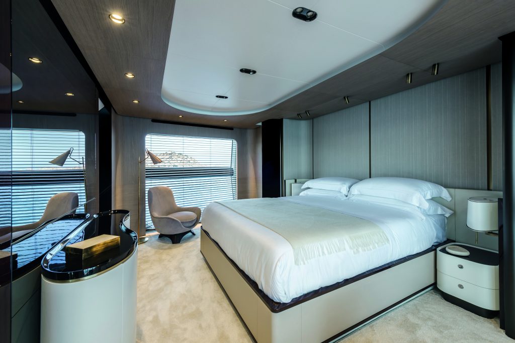 Impressiona pelo tamanho (27 metros) projeto de design arrojado e materiais tecnológicos. Partes estruturais do casco da Azimut Grande 27 Metri são feitas em fibra de carbono 100% pura – mesmo material utilizado em carros de fórmula 1 e foguetes – a Azimut Yachts é pioneira no mundo náutico. A aplicação contribuiu para aumentar o espaço disponível, melhorar a estabilidade, a navegabilidade e também na utilização de acabamentos nobres como o uso expressivo de pedras, madeiras e vidros sem aumentar o peso, além de melhorar a estabilidade. O modelo conta com cinco suítes, além de amplos espaços de convivência internos e externos, mobiliários e acabamentos de luxo italianos e alta tecnologia de navegação.