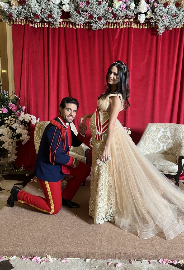 Com um figurino luxuoso e a caráter para o baile dos príncipes e princesas, Thiago Arancam vestiu Lo Bosco Milano & Vasco Vasconcelos Brasil, e sua esposa Aline Frare um vestido Tarik Ediz.