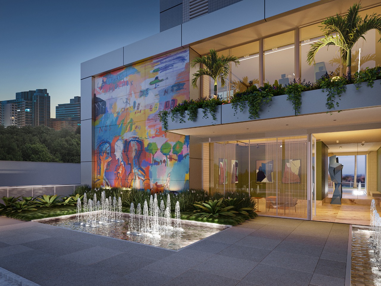 A obra se integra à cidade. Leva ares de galeria de arte ao condomínio, com peças de outros artistas – o que promove uma experiência única e de bom gosto aos moradores e visitantes. O edifício conta com 40 pavimentos e dois apartamentos por andar (de 155 e 188 m²), que têm quatro suítes, salas de estar e jantar integradas à varanda gourmet, três vagas de garagem cobertas, além de área de lazer completa, já entregue equipada e decorada.