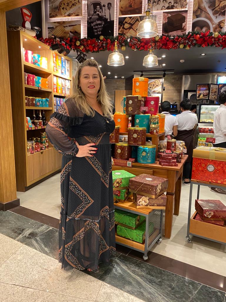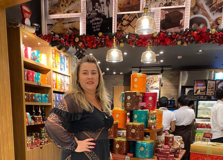 Nossa loja combina empório com cafeteria. As pessoas podem se sentar e saborear uma fatia de panettone salgado na chapa, chocottones, muffins, entre outras delícias”, explica a gestora da Casa Bauducco, Soraya Jereissati.