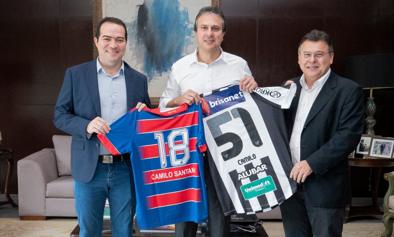 O governador Camilo Santana recebeu na manhã desta quinta-feira (30), no Palácio da Abolição, representantes do Fortaleza Esporte Clube e do Ceará Sporting Club para tratar da renovação da gestão compartilhada da Arena Castelão com os clubes em dias de jogos das equipes. O modelo adotado durante o ano passado será repetido por todo este 2020, ficando os clubes responsáveis por toda a operação e administração do equipamento em suas respectivas partidas. Além disso, a parceria no campo social também será estendida para as areninhas do Estado.