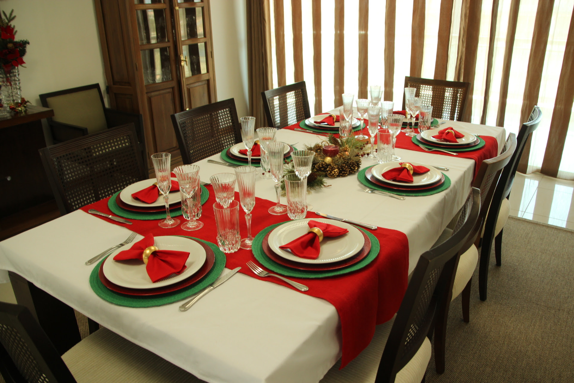 Segundo Glauber, o primeiro passo para organizar uma decoração de Natal incrível é fazer um checklist com os seguintes itens: quantos convidados você terá a mesa, qual será o cardápio para usar elementos de acordo e quais bebidas serão servidas para escolher copos e taças. Após concluir essa lista, pode começar a unir elementos que se encaixam para decorar.“Sou adepto de usar uma louça toda por igual mas isso não é regra, é válido brincar com pratos de várias cores, por exemplo, e montar uma mesa colorida. A depender da mesa, recomendo colocar uma toalha para não danificar o material, mas particularmente dou preferência a jogo americano e sousplat. Vai do gosto de cada um”, conta Britto.