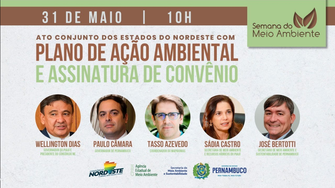 Em um ato conjunto, na próxima segunda-feira (31), às 10h, os estados do Nordeste abrirão a Semana de Meio Ambiente fazendo o lançamento de um Plano de Ação Ambiental integrado e o ato de assinatura do convênio entre o Consórcio NE e o MapBiomas.