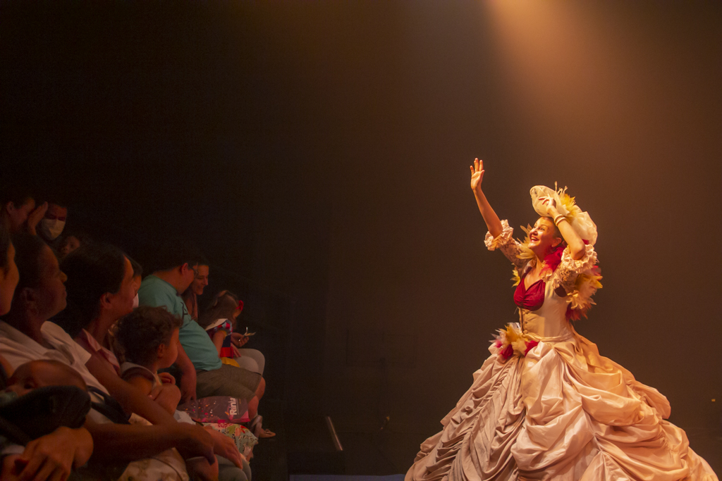 As linguagens da dança, do teatro e da música se encontram em “A RAINHA – Experiências extraordinárias para a primeira infância”. O espetáculo convida as crianças a adentrar o mundo onírico, mágico e efêmero das fábulas e contos maravilhosos. Com direção, concepção, criação e interpretação de Andrea Jabor, e codireção, figurinos e ambientação cênica de Flavio Souza, “A Rainha” foi selecionado no edital Petrobras Cultural para Crianças e, para realizar uma circulação por sete cidades de três regiões do Brasil, recebeu o patrocínio da Petrobras que, por meio do incentivo a diversos projetos, busca colocar em prática a crença de que a cultura é uma importante energia que transforma a sociedade. A companhia acredita que, com criatividade e inspiração, promove-se crescimento e mudanças.