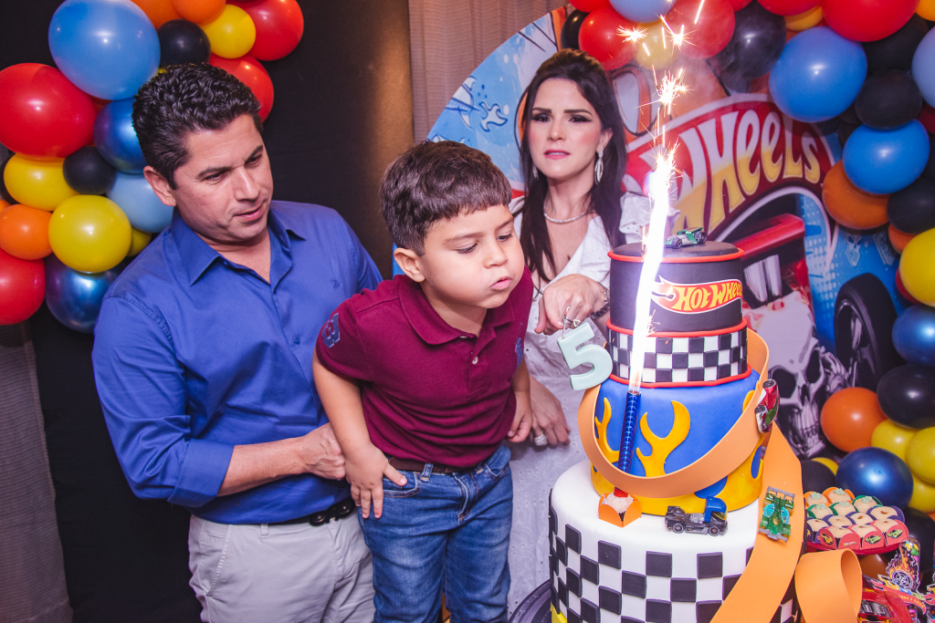 Pompeuzinho Vasconcelos faz 5 anos e ganha festa inspirada nos carrinhos Hot Wheels