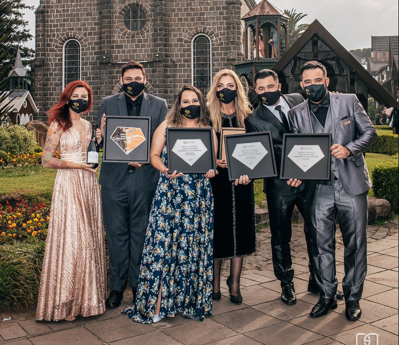 A Infuenciadora Presidente do Prime Gramado Jamille Graham, e os embaixadores Aline Viezzer (Gramado) e Bernardo Guedes (POA) e os blogueiros Andy e PH do @chapeudeviagem estavam vestindo looks de gala da loja Exuberance e Social Express para fazer a entrega das placas. O evento contou ainda com a parceria: Le Joli Hair Gramado, Emagrecentro, TAC Bebidas, JDR Soluções, Cava Castelord.