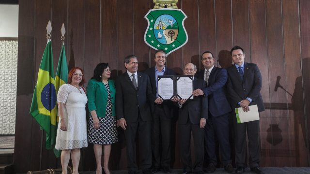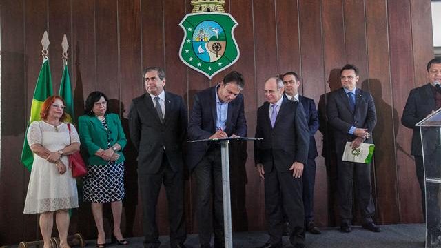 A lei que cria a Vara de Delitos de Organizações Criminosas foi sancionada nesta terça-feira (27) pelo governador Camilo Santana. A medida integra pacote de ações do Governo do Ceará, junto aos Poderes Judiciário e Legislativo, para potencializar procedimentos no combate a organizações criminosas e homicídios no Estado. O presidente do Tribunal de Justiça do Ceará (TJCE), desembargador Glaydson Pontes, e o presidente da Assembleia Legislativa do Ceará (ALCE), deputado José Albuquerque, também estiveram presentes no evento, no Palácio da Abolição.