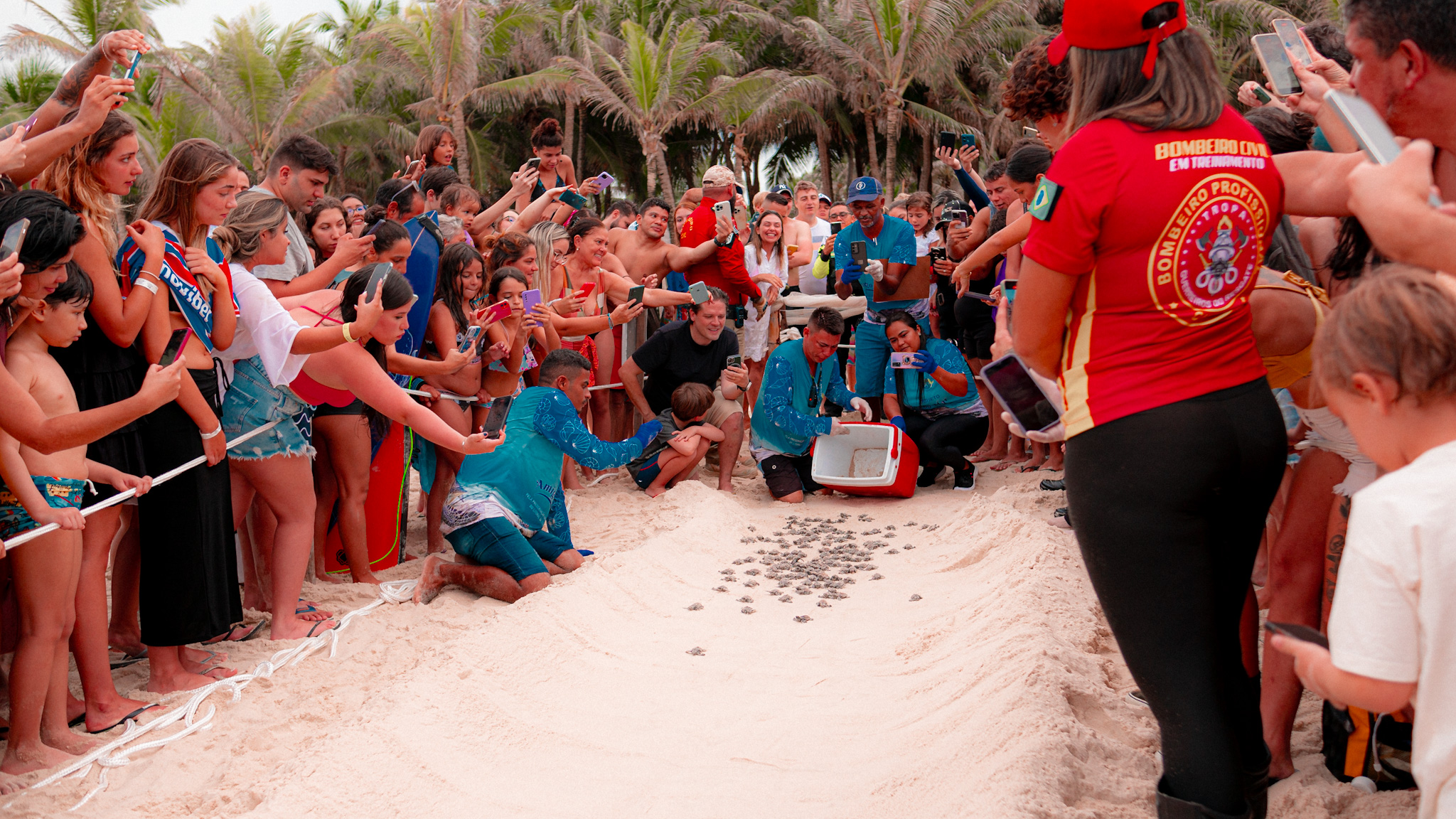 O CEO do Beach Park, Murilo Pascoal, e o secretário de Meio Ambiente de Aquiraz, Humberto Bezerra, entre outras autoridades, estiveram presentes para apoiar a iniciativa. Com a assistência de Bombeiros Civis e do Demutran, os profissionais abriram um caminho na areia para que as tartarugas pudessem seguir até o mar, garantindo um momento seguro e natural para os animais.