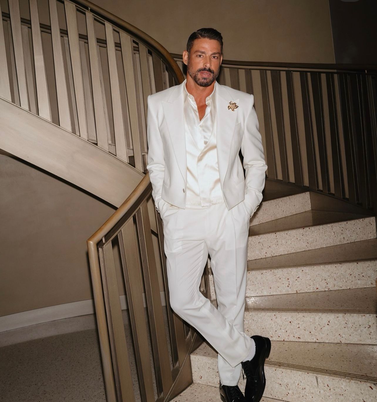 Em seu perfil no Instagram, Cauã compartilhou uma foto ao lado de San, durante um. Ambos estavam representando a mesma grife e posaram com looks semelhantes: ternos brancos com broches dourados e prateados. Na legenda, o ator contou que sua filha não pôde comparecer ao evento, mas recebeu a foto como uma lembrança.