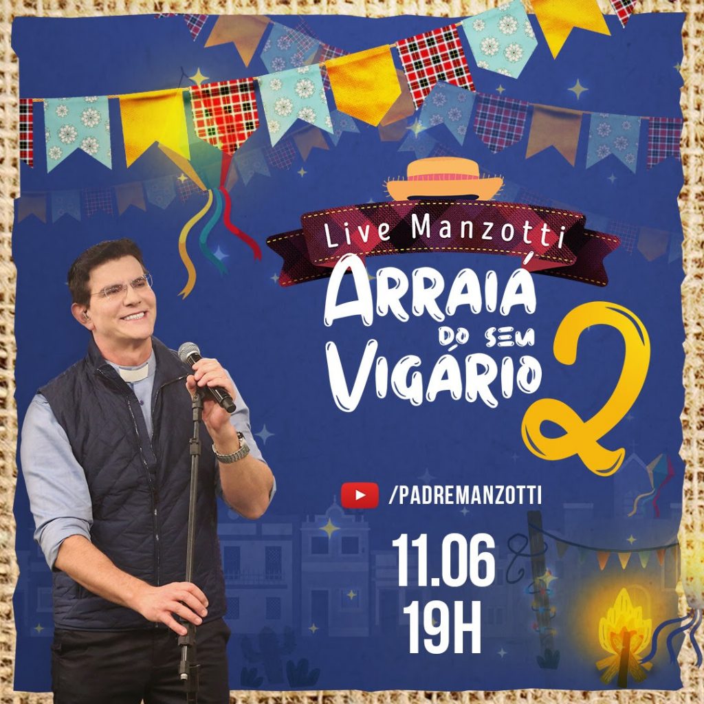 Após o grande sucesso da live junina realizada no ano passado, o Padre Reginaldo Manzotti confirmou em suas redes sociais o “Arraiá do Seu Vigário 2”. A festança acontece no dia 11 de junho, às 19h, no seu canal do Youtube (youtube.com/padremanzotti).