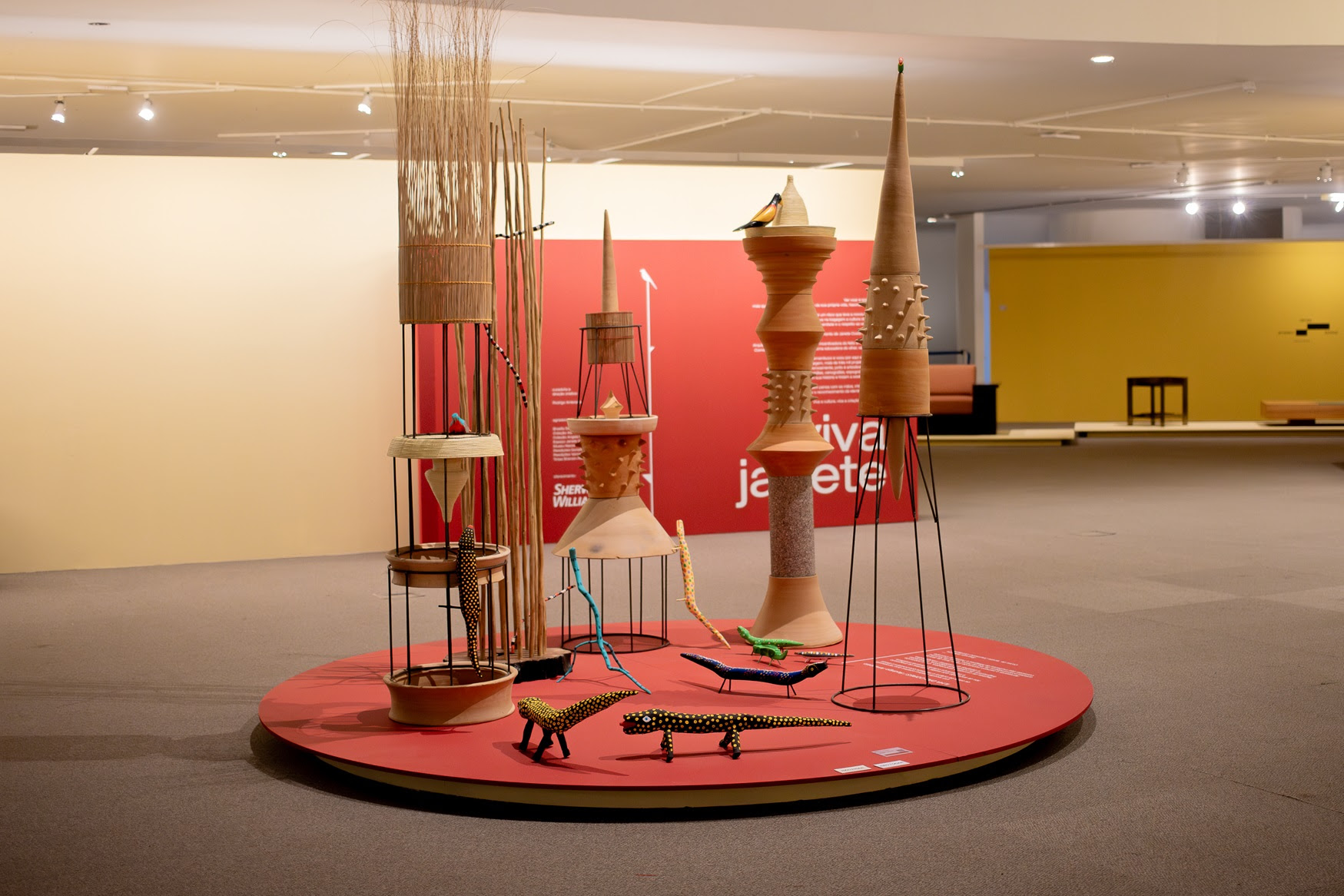Outro espaço promovido pela Sherwin-Williams é Ilha das Cores, uma instalação artística assinada também por Rodrigo Ambrosio que celebra a exuberância criativa da comunidade da Ilha do Ferro e outras regiões de Alagoas. No centro do museu, sobre um tablado circular encarnado pintado na cor Vermelho Confiante, totens expõem elementos simbólicos dos saberes locais: a tornearia manual do oleiro Jean de Satuba, conchas de sururu da Lagoa Mundaú, cestarias das mulheres de Milagres e Pontal do Coruripe, além das obras de artistas policromáticos da Ilha do Ferro, como Boioiô, Genauro, Jailton, Vavan e Zé Crente. A obra traduz um “oásis de cultura e natureza” e reforça a potência do feito à mão como elo entre memória, território e inovação.