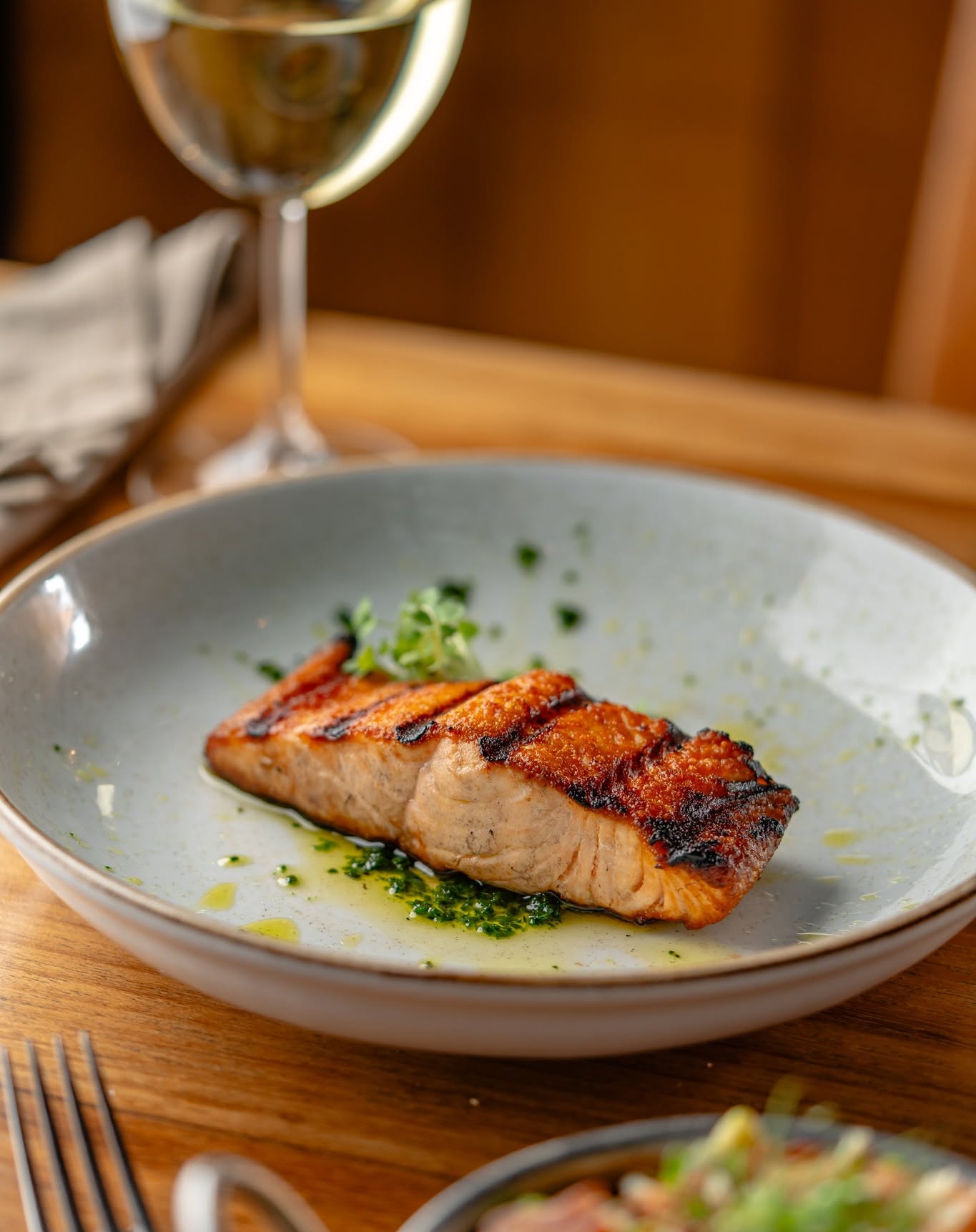 Prepare-se para uma experiência de sabor sem igual no Carbone! Nosso salmão grelhado é uma obra-prima de equilíbrio e suculência. Cada posta de 220g é cuidadosamente grelhada no ponto certo, garantindo uma textura macia por dentro e uma crosta deliciosamente dourada por fora. O segredo? Nosso molho exclusivo, que complementa o peixe de forma magistral, realçando sua riqueza natural e adicionando uma camada extra de sabor que vai te surpreender. No Carbone, você não apenas come salmão, você o celebra!