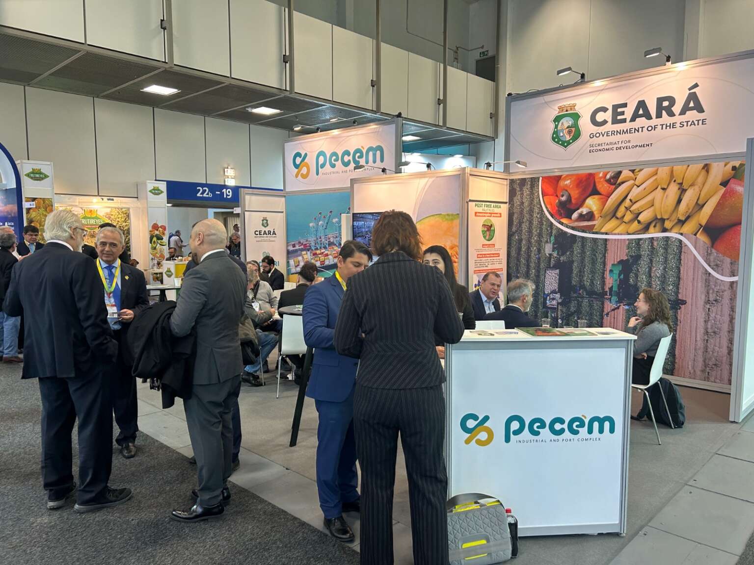 O estado do Ceará voltou a ter estande próprio na Fruit Logistica este ano. A última vez havia sido em 2019. Também participam da feira o secretário executivo do Agronegócio, Silvio Carlos Ribeiro; o presidente da Agência de Defesa Agropecuária do Ceará (Adagri), Elmo Aguiar; o coordenador de Recusos Hídricos da SDE, Erildo Pontes; o diretor comercial do Complexo do Pecém, André Magalhães; e o gerente de Negócios Portuários do Complexo do Pecém, Raul Neris Viana.