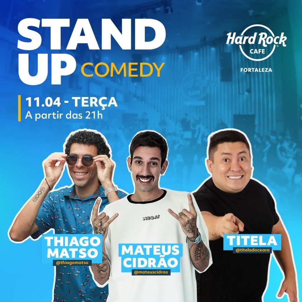 O humor cearense sempre foi conhecido por sua irreverência e criatividade, e não é diferente com os comediantes Thiago Matso, Mateus Cidrão e Titela. Com estilos únicos e abordagens originais, esses talentosos artistas prometem uma noite de risadas e descontração em um show de Stand Up que acontecerá no dia 11 de abril, às 19 horas, no Hard Rock Cafe Fortaleza.