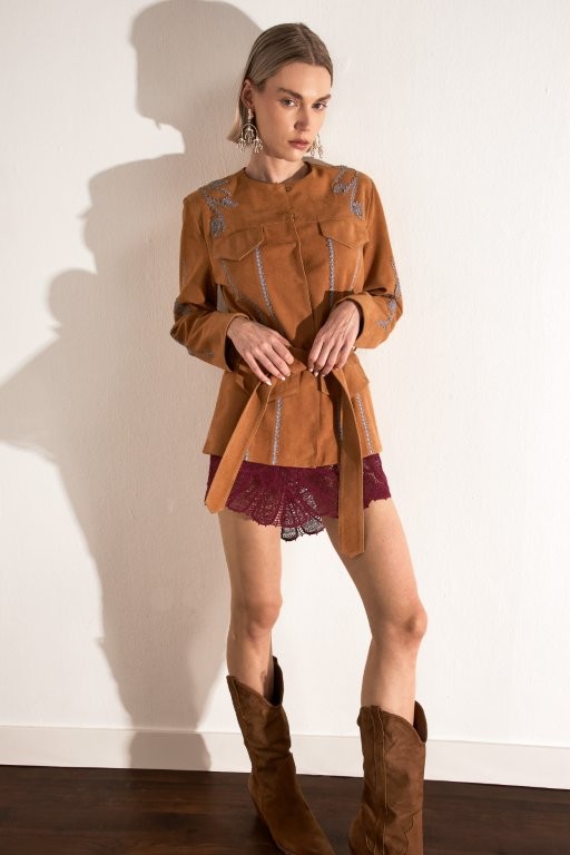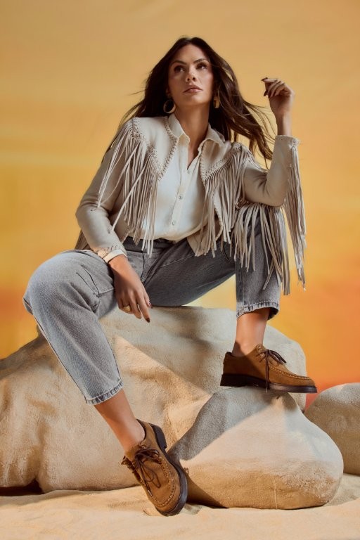 Quando falamos de estéticas ligadas ao universo country, acrescentar texturas ao look é um grande truque de styling . Nos últimos meses, diretores criativos de grandes marcas voltaram os olhos para o universo equestre, com foco nos tecidos e texturas característicos do estilo de vida. Por isso, a aparência rústica da camurça fez com que peças usando o tecido se tornassem protagonistas de diversas coleções desfiladas durante as semanas de moda internacionais. Para conseguir precisamente com uma produção cheia de personalidade, vista em botas, bolsas, calças, camisas e camisetas no material!