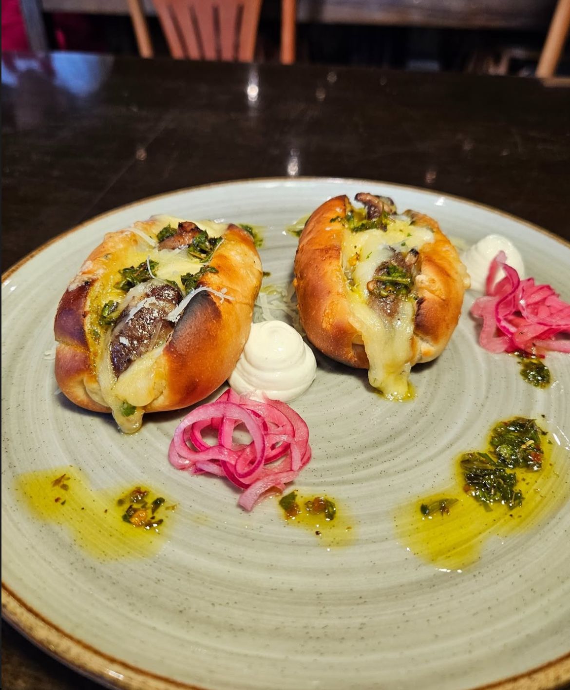 No coração da Fortaleza Restaurant Week, o restaurante Santa Grelha convida a uma experiência gastronômica memorável, começando por sua irresistível entrada. Delicie-se com dois mini pães artesanais, cuidadosamente recheados com saboroso coração de frango e cobertos por uma generosa camada de queijo derretido e gratinado, finalizados com o toque aromático de ervas frescas. Para complementar esta explosão de sabores, a entrada é servida com um suave creme e saborosas lâminas de cebola roxa em conserva, proporcionando uma acidez equilibrada a cada mordida.