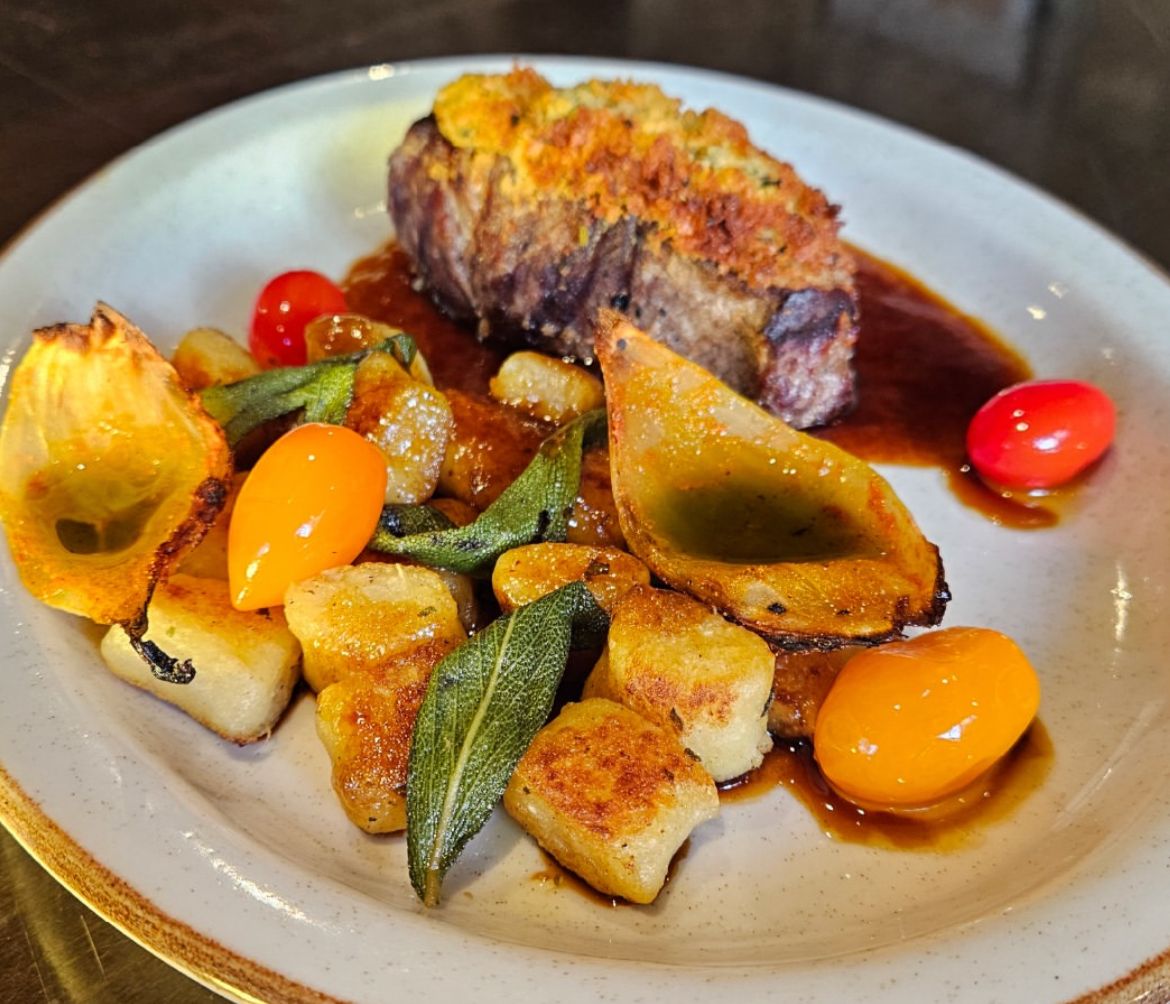 Para o prato principal, o Santa Grelha apresenta o sofisticado Bombom de Alcatra, uma verdadeira joia da culinária. Uma carne selecionada, suculenta e de extrema maciez, é envolta em uma deliciosa crosta de gorgonzola que derrete delicadamente no paladar, liberando um sabor único e marcante. Acompanhando esta experiência sublime, um gnocchi leve e saboroso completa o prato, oferecendo uma textura agradável e um toque de requinte à refeição.