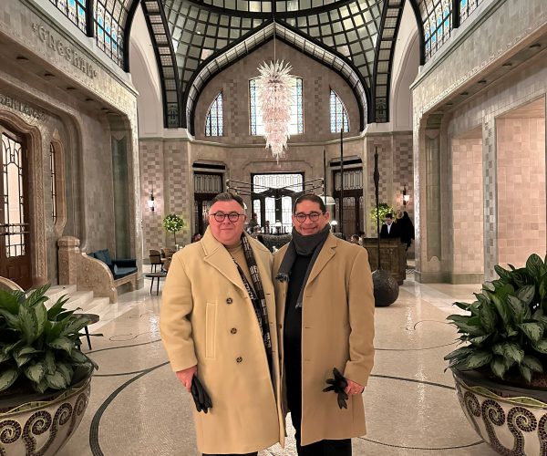 O design de interiores André Monte comemorou, no Gresham Palace, em Budapeste (Hungria), o seu aniversário. Acompanhado do esposo Alexandre Pitta, empresário, a celebração aconteceu em um jantar especial no restaurante Músza, localizado no interior do Palace.