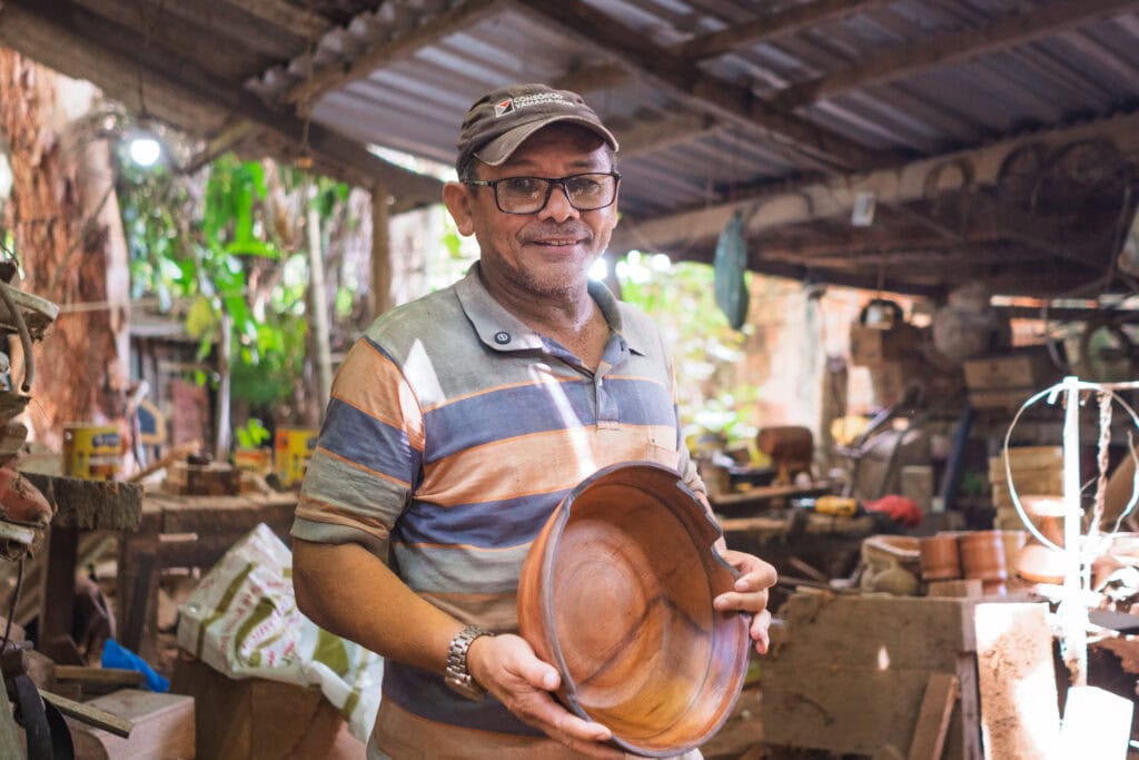 Do quintal para o mundo, madeira de manejo se transforma em peças utilitárias e decorativas pelas mãos de artesão