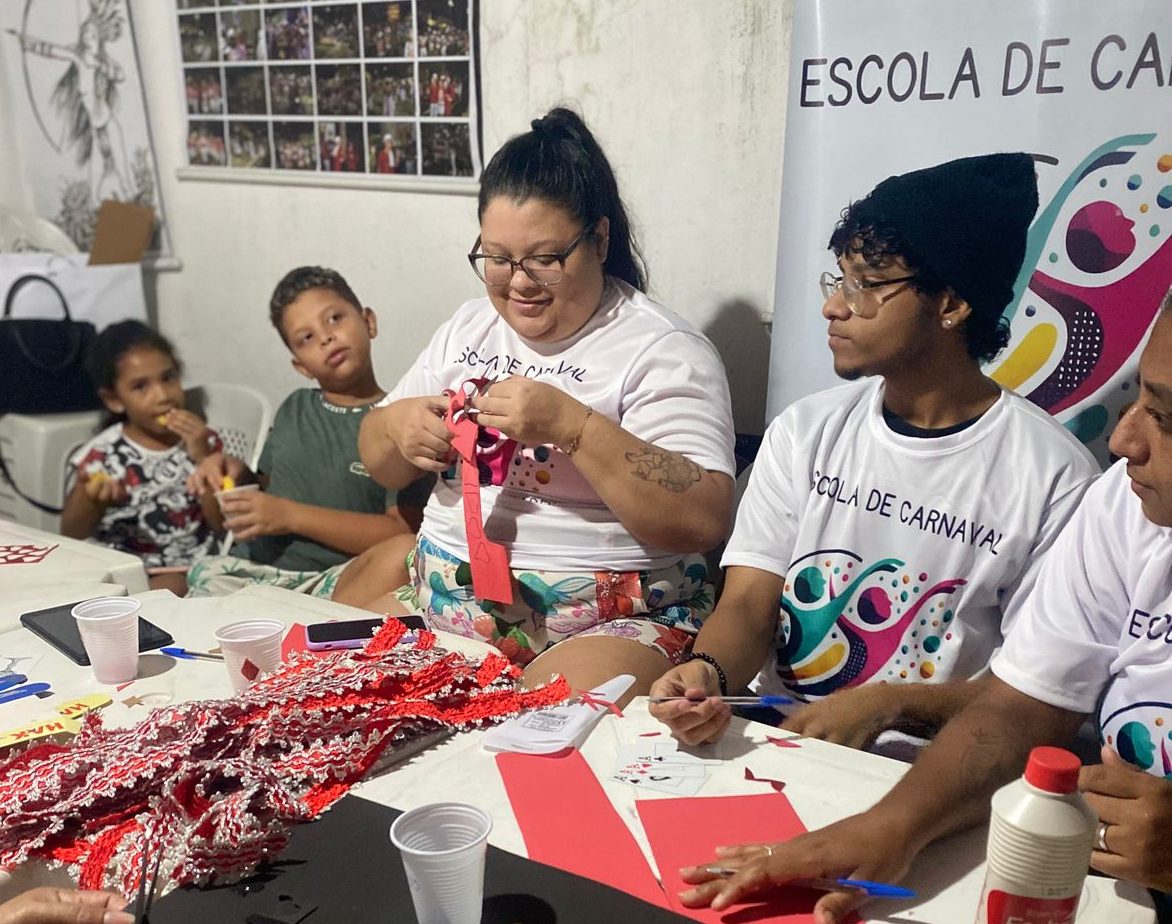 O programa Escola de Carnaval em Rede de Comunidades é uma iniciativa cultural que conecta comunidades de Fortaleza através da arte, aprendizado e celebração. Com o objetivo criar uma rede articulada entre Agremiações para ampliar seu raio de ações formativas e oferecer oportunidades de participação às pessoas das comunidades mais vulneráveis social e economicamente. O programa completo, oferece um ciclo de Formação composto por 04 cursos, (Adereços, figurino, corte costura e liderança), cada curso com três turmas, realizados, nas sedes das agremiações parceiras, ou em locais próximos a elas.