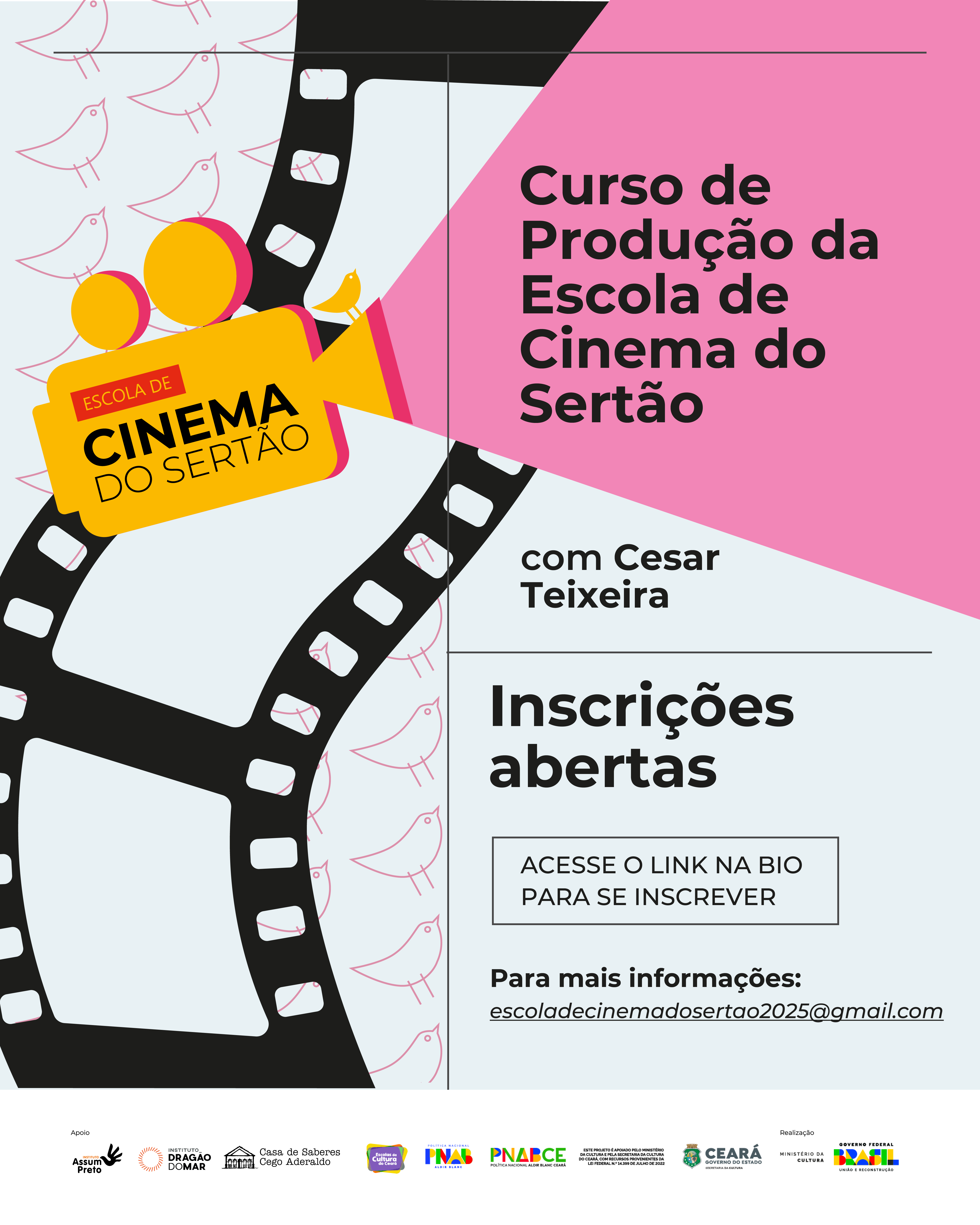 O cinema volta a movimentar o Sertão Central com mais uma etapa formativa da Escola de Cinema do Sertão. O novo módulo ofertado é o Curso de Produção Audiovisual, ministrado por Cesar Teixeira, jornalista e cineasta com ampla experiência no cinema cearense. A formação, com carga horária de 30 horas, oferece uma imersão prática nos processos de produção cinematográfica — da pré-produção à finalização —, abordando planejamento, organização e gestão de set.
