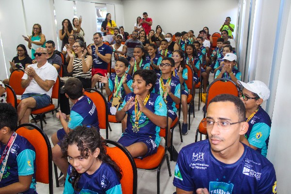 Os triatletas mirins premiados da “Escolinha de Triathlon Formando Campeões – Núcleo Aracati” visitaram o Paço da Liberdade nesta quinta-feira, 27, e receberam em conversa com o prefeito Bismarck Maia a notícia da aquisição de 50 bicicletas infantis para estimular um melhor desempenho das crianças nas competições.