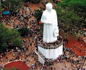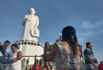 Fiéis escrevem seus nomes na parede da estátua de padre Cícero.