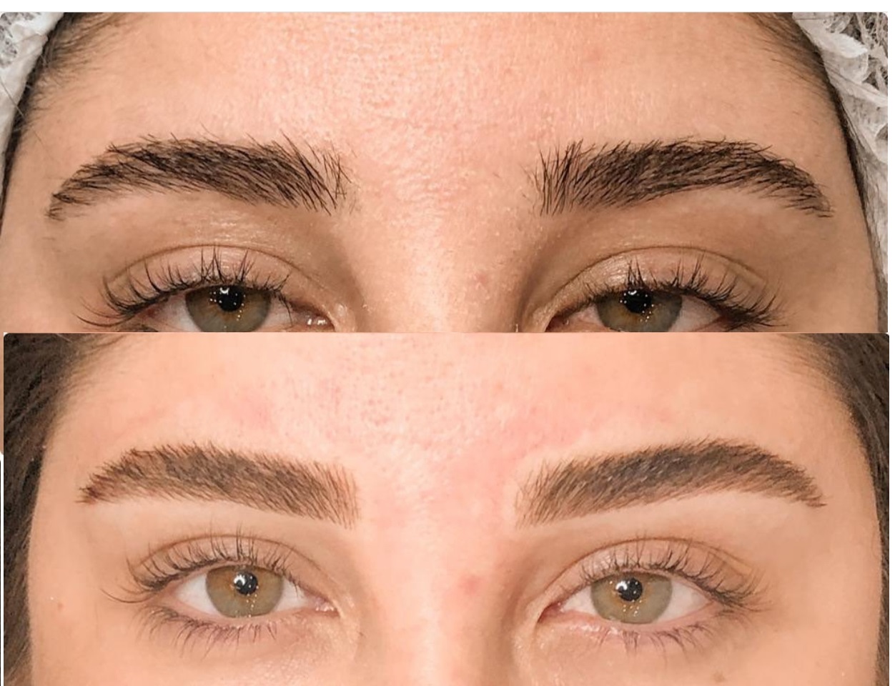 O resultado desse processo são fios com desenho mais grossos. A expressão fica super marcante e bem delineada. Já no microblading, cuja técnica é mais delicada, é ideal para quem procura um resultado mais suave, mais leve. Por sua maior precisão, ela reduz o espaçamento entre os fios desenhados e deixa os pigmentos menos perceptíveis”, ressalta.