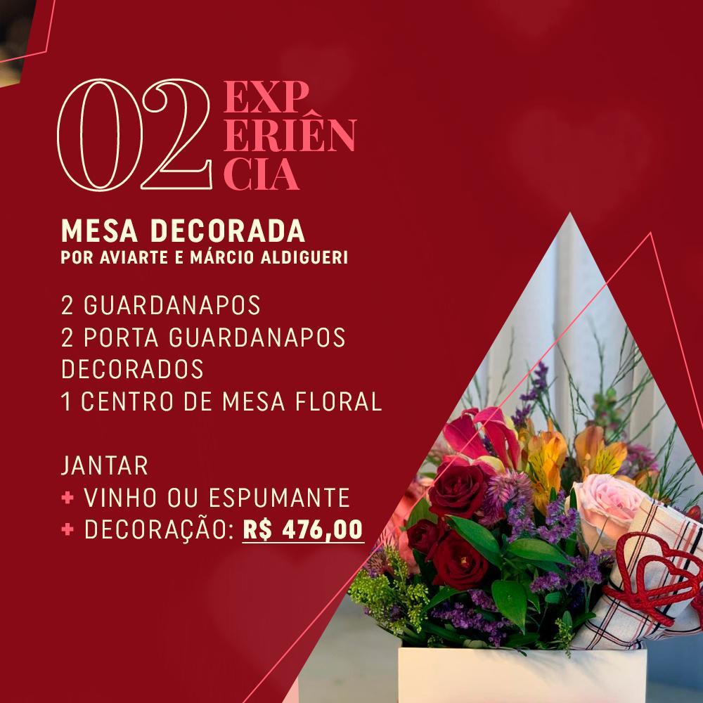 Jantar completo + vinho ou espumante + guardanapos, porta guardanapos e um arranjo floral