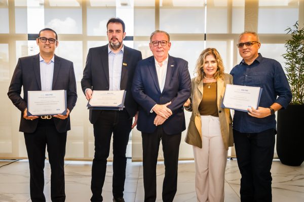 O Presidente da Federação das Indústrias do Estado do Ceará (FIEC), Ricardo Cavalcante, participou, nesta segunda-feira, 10, da cerimônia de entrega do Selo ESG-FIEC, realizada na Casa da Indústria. Receberam a certificação as empresas Intraplast, BCP Construções e Jangadeiro Têxtil. As três foram avaliadas pela Bureau Veritas, empresa francesa líder mundial em testes, inspeção e certificação.