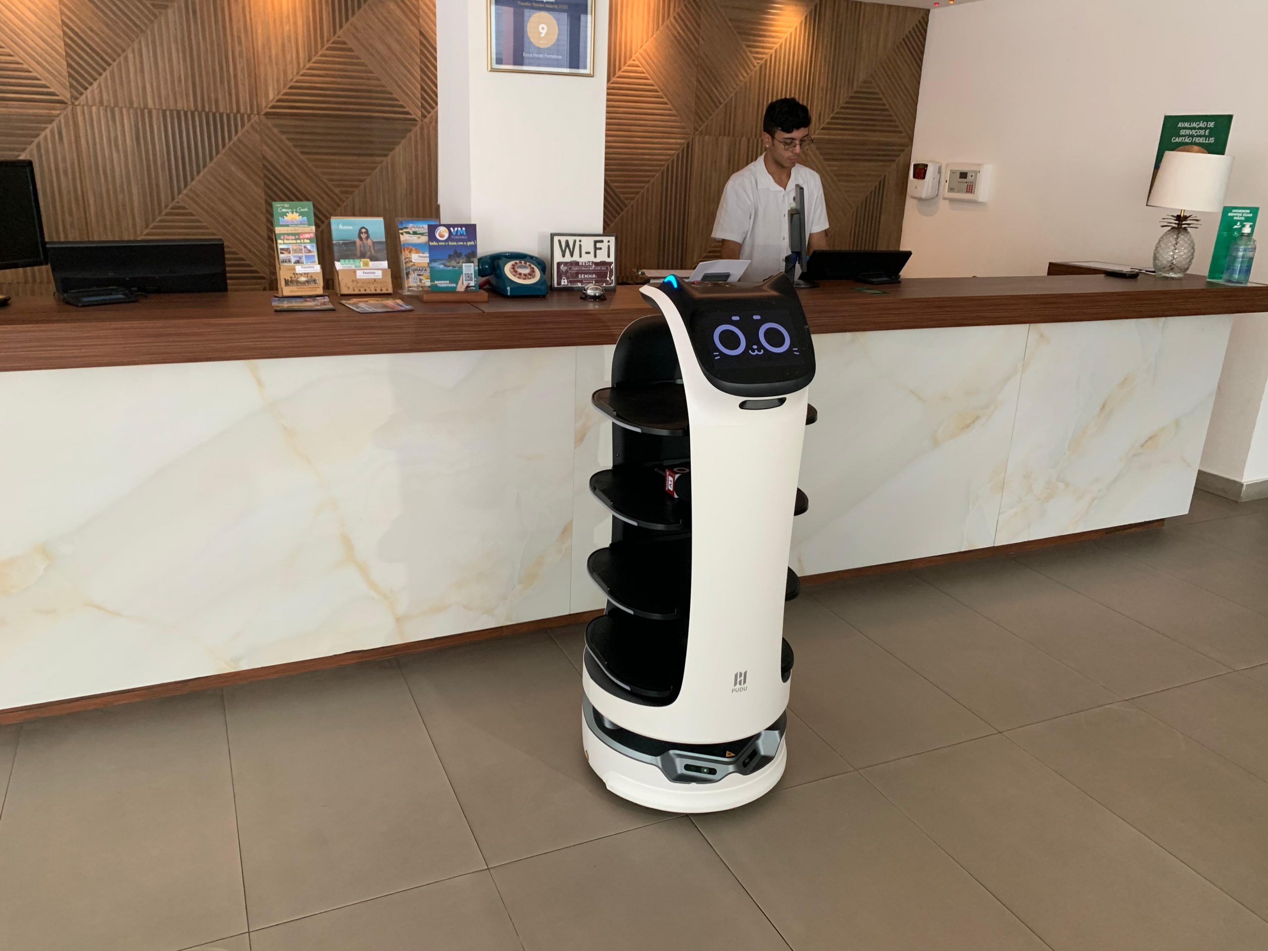 Robô de serviço atendendo hóspedes revoluciona hotelaria em Fortaleza