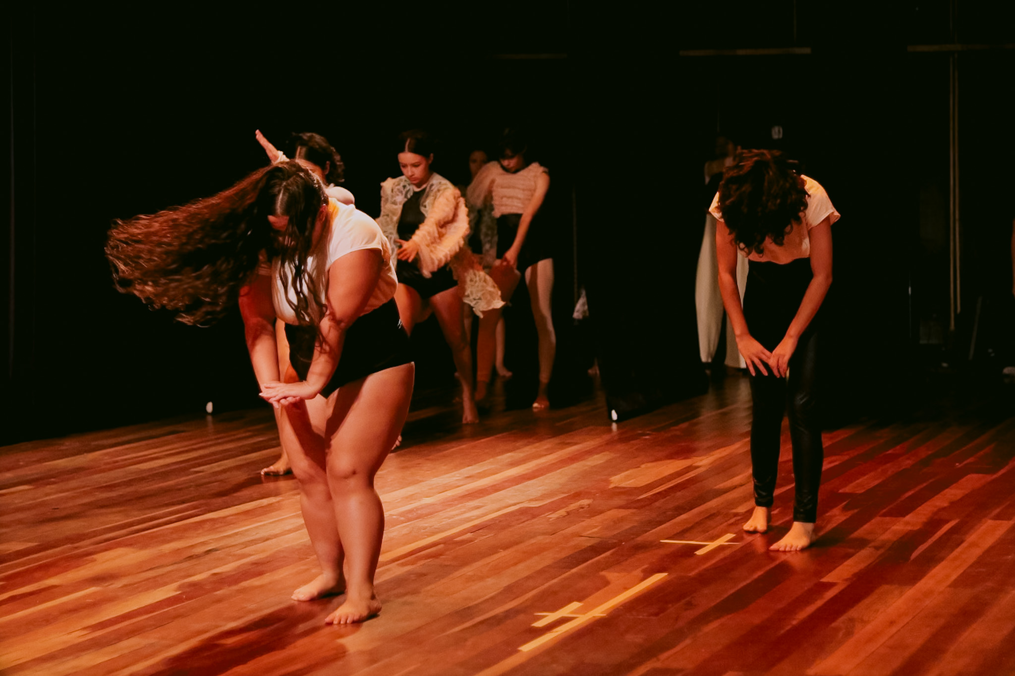 Com coreografia e direção artística de Luiz Otávio Queiroz e assistência de Fellipe Resende, ambos professores da Escola de Dança, “Ondas de Fuga” teve lançamento em maio de 2024. Esta é a primeira criação original do grupo, iniciado em 2023 com a proposta de abrir espaço para o aperfeiçoamento técnico e encaminhamento profissional das pessoas egressas do Curso de Formação Básica em Dança.